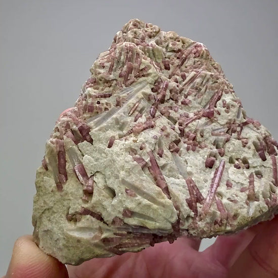 Add a vibrant touch of natural beauty to your collection with this stunning rubellite tourmaline specimen straight from the legendary pegmatite deposits of Minas Gerais, Brazil. Showcasing lustrous raspberry-red rubellite crystals embedded in a classic granular quartz-feldspar matrix, this piece exemplifies the region’s world-renowned mineral richness and color intensity.